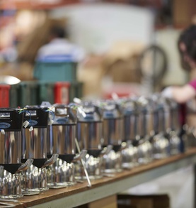 The powerful yet silent Coffee Shop Grinder #63, from Santos, is equipped with an asynchronus motor, giving it exceptional output (up to 120kg/hour).